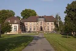 The house was built as a summer residence by Jean de Dietrich in the German Baroque and Classical French style.[2] Noteworthy features of the château include the façade, the roof, the terraces and the fences, and inside the building, the five panelled rooms on the ground floor and the main staircase. The outbuildings are 18th century, and their roofs and façades are of note. The château has substantial gardens.[1]