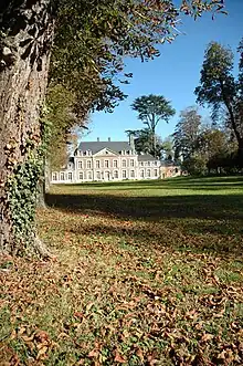 In 1598, Jacques Le Faë (d. ca. 1630), Adviser to the King, 'Controleur general des traites dominilales et impots en la province de Normandie', acquires the Alinette domaine from the Cormeilles Family on the 6th of April. He builds the present Château Louis de XIII style in bricks, works will only start in 1616 (exchange of contract only on 14 May 1607) and will be completed in 1632.[2] (The inscription 1616 can be found on one of the main chimneys.) He married Anne Petit, then died in 1630, and the estate is ruled by his wife on behalf of her nobles children until 1637. Adrien (d. ca. 1669) Le Fae Sieur de Bosc Theroulde, Adviser to the king, 'Maitre en sa Chanmbre de Normandie', inherited the Estate and was made escuyer in 1640. He built the chapel (1646–1648) along the Chateau, named after his patron saint, after being saved from the plague of Rouen (in 1637 in Rouen 11,000 people died in 10 months). Christophe Charles Le Faë (died 28 March 1707), Lord of Bosc Theroulde, Saint Germain, Mêtillon, La Mivoie and other places, adviser to the Parliament of Rouen, appointed on 3 March 1670, succeeded to Adrien and married Madeleine Le Roux (died 8 May 1719). A stone shield located on the west wing represents their respective merged family shields.