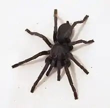The body length is approximately 2.5 cm for adult males and 5 cm or larger for females.[5] It is one of the largest spiders in Israel.[2] The color varies between black, gray and brown dark; they tend to be paler in the cooler more forested regions of their range and darker in the southern more arid areas.[4]