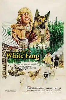 Challenge to White Fang (Italian: Il ritorno di Zanna Bianca) is a 1974 Italian Northern adventure film directed by Lucio Fulci. It is a sequel to Fulci's White Fang (1973), as part of a trend inspired by Call of the Wild (1972), which was a surprise hit in Italy.[2] Two German productions in this trend were Hellhounds of Alaska and Cry of the Black Wolves, both directed by Harald Reinl.[2]