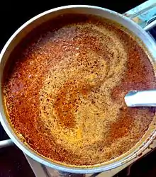 This hot chilli recipe is made from locally grown chillies in the Chamba area,[2] mixed with extract from a local citrus fruit and cooked with Indian spices.[3] It is usually prepared in mustard oil which is commonly used in Indian cooking.[4] The red chilli version of the preparation is usually made from sun-dried chilli peppers and has a smokey flavour.
