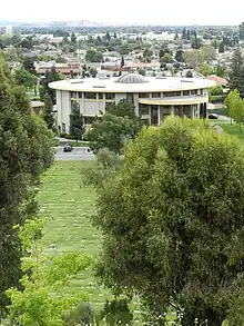 Chapel of the Chimes Memorial Park and Funeral Home is a 61-acre (25 ha) cemetery, mausoleum, crematorium, columbarium and funeral home complex in Hayward, California. The site was first established as a seven-acre cemetery in 1872. One of the memorial park's three mausoleums is circular in design, the only such one in California.[1] The park hosts one of the larger Memorial Day services in the San Francisco Bay Area.[2] A replica of the Angel of Grief statue is located there. The former Masonic Cemetery and Decoto Cemetery are now encompassed within its bounds. The park's owners, NorthStar Memorial Group, also operate the Chapel of the Chimes columbarium in Oakland, California, Skylawn Memorial Park in San Mateo, and Sunset Lawn Chapel of the Chimes in Sacramento.[3]