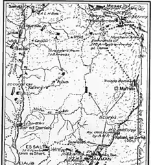 By 26 September the Fourth Army's Amman garrison (less the rearguard captured at Amman) had not been "heavily engaged,"[3] and "was still intact as a fighting force even though it was in rapid retreat" northwards towards Damascus, along the Hejaz railway and Pilgrims Road, some miles to the east of the Jordan River.[4]