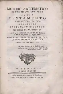 - Metodo aritemetico di far molto con poco ossia testamento aritmetico-politico (in Italian). Venice: Antonio Graziosi. 1787.