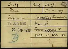 In March 1938, the Third Reich annexed Austria via the Anschluss, and Bliss, as a Jew, was sent to Dachau concentration camp. Later. he was moved to Buchenwald concentration camp. His wife, Claire, a German Catholic, made constant efforts to have him released. He was released in 1939 but was required to leave the country for England immediately. In England, Bliss tried to bring his wife to him, but the outbreak of World War II in September 1939 made that impossible. It was there that, because the Nazi bombing of England was called the "blitz," he changed his surname to Bliss.