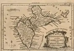 The first French settlers suffered from famine and fought with the Caribs and the English, who also had a settlement on the island.[2] In November 1629 the Spanish admiral Fadrique de Toledo drove the French from the island. They left on two ships and attempted colonization of Antigua and Montserrat.[3] They returned to Saint-Christophe in 1630.[2] L'Olive was appointed lieutenant governor to Esnambuc on Saint Christophe in 1631. He sent his capable young assistant Guillaume d'Orange to visit the nearby islands of Guadeloupe, Dominica and Martinique and determine their potential as colonies. D'Orange thought Guadeloupe had the greatest promise.[4] Spanish attempts to colonize the Guadeloupe archipelago in the first half of the 16th century had failed, and since then European sailors had only used it as a resting place.[5]