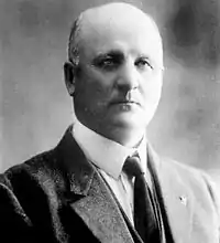 As the popular choice leading into the election,[15] he handily defeated fellow councillor Arthur Cushing by a count of 627 votes to 355, and thus became mayor of Edmonton.[12] He served in this capacity for one term of one year, but did not seek re-election in 1906 and retired from political life thereafter. It was during May's term as mayor in which the municipal foundations of Edmonton were set; he oversaw the purchase of the road maintenance equipment, the city's first telephone system as well as the upgrade of the street car system to steel rails and posts, purchase of land for municipal use,[16] paving of roads,[17] and negotiations for the establishment of a manufacturing plant in the city.[2][6] He also travelled to Toronto to lobby for a new union railway station in Edmonton to be constructed for use by the Grand Trunk, Canadian Northern and Canadian Pacific Railways.[18] It was also during May's term which the Alberta Legislature Building first opened its doors, and he participated in its opening ceremonies.[19] In 1911, he was named a returning officer for Edmonton, in charge of overseeing the 1911 Canadian federal election.[20]