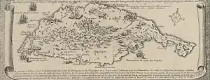 In 1651 the Compagnie des Îles de l'Amérique went bankrupt and Phillippe de Longvilliers de Poincy persuaded Jean-Paul Lascaris-Castellar, grand master of the Order of Saint John of Jerusalem, to buy the French part of Saint-Christopher Island and the smaller islands of Saint Barthélemy, Saint Martin and Saint Croix for 120,000 écus. King Louis XIV of France remained sovereign of the islands, and Poincy was confirmed as governor of Saint Christophe.[2] Charles de Sales was sent by the Order to govern with Poincy in 1657 on the death of the Chevalier Charles de Montmagny.[3][lower-alpha 1]