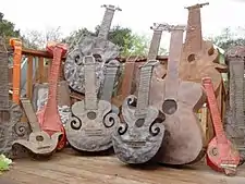 Dingulators are guitar sculptures made out of recycled automotive steel. They are a class of musical instrument invented by Charlie Nothing and each construction is unique with its own sound.[6]