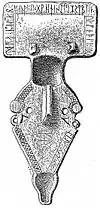 The Charnay Fibula is a mid-6th century fibula or brooch which was discovered in Burgundy in 1857. It has a runic inscription consisting of a horizontal partial listing of the first twenty of the twenty-four rune sequence of the Elder Futhark:[1]