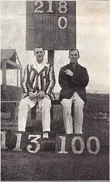 HW Hodgson and WE Jones in 1921 pose for the camera after adding an unbeaten 218 v Durham at Burnmoor