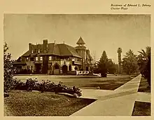 Chester Place quickly became one of the most desirable residential neighborhoods in Los Angeles. Wealthy socialite Mrs. S.E. Posey purchased the first lot in Chester Place and hired some of the best architects of the day to erect an opulent twenty-two-room mansion. With this move the neighborhood soon began to fill with the rich and influential citizens of Los Angeles, and then on October 24, 1901, Edward and Estelle Doheny purchased number 8 Chester Place for $120,000 cash.[3]