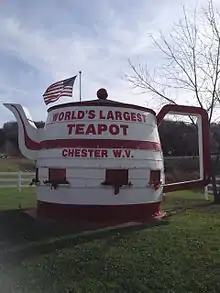 - ↑ "Chester, WV - World's Largest Teapot". RoadsideAmerica.com. Retrieved 7 January 2019.