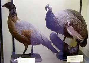 Domestic fowl × guineafowl hybrid (left) and guinea fowl × peafowl hybrid (right), Rothschild Museum, Tring