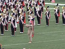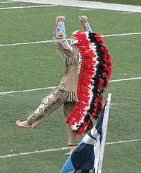 In May 2010 the Students for Chief Organization chose a new student to serve as the 38th chief portrayer: Ivan A. Dozier, who is of Cherokee ancestry.[66] Dozier performed as Chief at the "Next Dance" event over homecoming weekend at the university in 2010. He also appeared in regalia at numerous sporting events throughout the years.[67] Bennett Kamps was select to replace Dozier upon his graduation, with an initial appearance in February, 2016.[68] The current portrayer is Omar Cruz Aranda.[69]