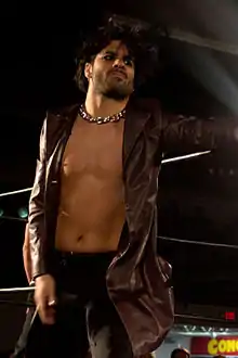 On May 8, Chikara announced the first title match for the iPPV, where Eddie Kingston would defend the Chikara Grand Championship against Icarus in a match "one year in the making".[20][21][25] On June 2, 2013, Kingston and Icarus faced off in the main event of Aniversario: Never Compromise. In the weeks leading to the event, Icarus, once known as one of the most hated wrestlers in Chikara,[26] turned tecnico and, following the implosion of his F.I.S.T. stable, began chasing the promotion's top title, held by Kingston, who in turn had begun showing signs of a rudo turn.[27] At the iPPV, Icarus had the match won, when Condor Security interrupted the match and shut down the event, leading to the one-year long hiatus.[28] During the hiatus, Icarus was the leader of the group of wrestlers trying to bring Chikara back,[1][7] while Kingston was one of the few Chikara wrestlers not to align with the group. During the National Pro Wrestling Day, when he was met with chants of "Chikara", Kingston even proclaimed that the promotion was dead.[29] Kingston and Icarus are both Chikara originals, with Icarus graduating from the promotion's first group of trainees and Kingston from the second in 2002.[30]