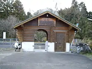 The station, which is unstaffed, consists of a side platform serving a single track. Across the track can be seen another, disused side platform as well as the track bed of a second track which has since been removed. A siding branches off the track and ends behind the platform and is used by track maintenance equipment. A small station building built in a loghouse style serves as a waiting room. A separate weather shelter is provided on the platform itself.[2][3]
