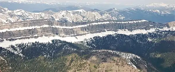 The Chinese Wall is a large escarpment located in the Bob Marshall Wilderness Area in Montana. While definitions of the length of the wall vary (to up to forty miles) the part of the wall that is most well defined and continuous is about twelve miles long.[1] The Chinese Wall makes up part of the Continental Divide, meaning water on the different sides of the wall flow into either the Atlantic Ocean (through the Gulf of Mexico) or the Pacific Ocean.