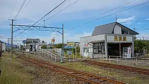 Chitose Station (千年駅, Chitose-eki) is a railway station in the city of Hirosaki, Aomori Prefecture, Japan, operated by the private railway operator, Kōnan Railway Company. The station's name is transliterated as "Titose" on its signage.