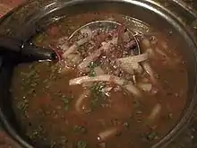 Kalli A noodle soup made with minced beef and hand-cut whole wheat noodles. It is very similar to the Central Asian laghman and is probably of Chinese origin.