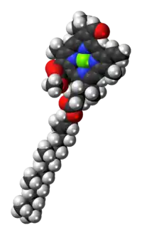 | Structure of chlorophyll b molecule showing the long hydrocarbon tail | |