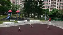 Choi Sai Woo Park is a landscaped garden with a total area of 2,400 m2 providing some country freshness among a number of housing estates and schools.[3] Located next to prestigious new housing developments and with several schools in the area, it serves the community as a place of rest. There are two small basketball courts in the Park. The garden area is located at the very bottom level of Choi Sai Woo Park abutting the car parking lot of TutorTime. It is mainly planted with bamboo. There is a children's playground located at the top of the park. A pagoda adjoins the playground. A number of amenities including restaurant or tea shop "cha chaan teng", Wan King, TutorTime and 7-Eleven outlets, are in the vicinity.