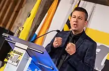 Janssens worked as a notary public officer prior to his political career. He first joined the former Vlaams Blok party when he was a teenager, citing concerns with social integration and multiculturalism which he argued had caused divides and harmed Flemish identity.[1] Janssens was first elected as a representative for the Vlaams Belang party to the Flemish parliament in 2009 for the Limburg constituency, and was re-elected in 2014 and 2019. He serves as the VB's floor leader in the Flemish Parliament and its main spokesman for the Flemish region.[2] Janssens has also been a city councilor in Genk since 2007.[3]