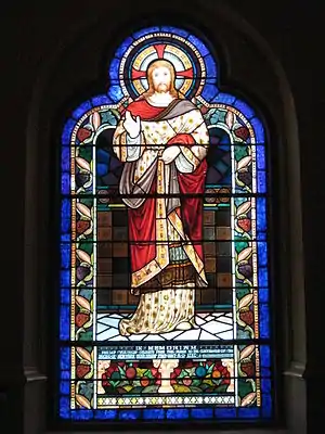 Photo of stained glass window by church entrance, 2008