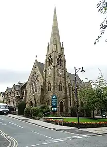 The foundation stone of the church was laid by James Law, Mayor of Bradford, on 30 May 1868.[2] The architect was James Pigott Pritchett Jr of Darlington and the cost estimated at £5,000 (equivalent to £480,000 in 2021).[3]