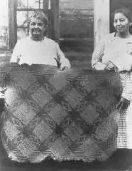 ![]() Christine Navarro Paul (left) in 1908 displaying a woven cane mat outside her house | |