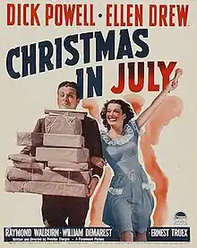 Christmas in July is a 1940 American screwball comedy[2] film written and directed by Preston Sturges, and starring Dick Powell and Ellen Drew.