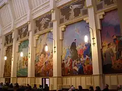 The Church of La Milagrosa is a building located in the Segundo Ensanche development area of Pamplona, built in 1928 and inaugurated in 1930, designed by the architect Víctor Eusa Razquin. It is part of the convent made for the Congregation of the Mission, which members are known as Paules locally, and therefore the church is also known with the names Padres Paúles or Misioneros Paúles.