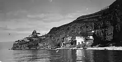 Saint John the Theologian, Kaneo (Macedonian: Свети Јован Канео, Latinic: Sveti Jovan Kaneo) or simply Saint John at Kaneo is a Macedonian Orthodox church situated on the cliff over Kaneo Beach overlooking Lake Ohrid in the city of Ohrid, North Macedonia. The church is dedicated to John of Patmos, the writer of Revelation, who has been by some considered to be the same person as John the Apostle. The construction date of the church remains unknown but documents detailing the church property suggest that it was built before the year 1447. Archaeologists believe that the church was constructed some time before the rise of the Ottoman Empire very likely in the 13th century. Restoration work in 1964 led to the discovery of frescoes in its dome.