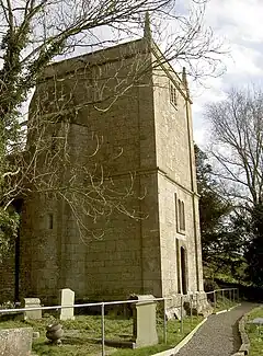 In addition to the tower there is a nave and chancel with a south porch.[1] Inside the church is a font carved from a sacrificial altar.[2][3] There are also monuments from the 18th century.[1]