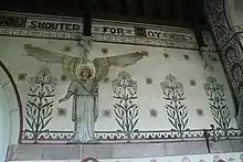 The interior is "calmer"[3] but still elaborate, decorated with wall paintings by a German artist to the designs of Coates Carter, Seddon's architectural partner after John Prichard's death.[1]