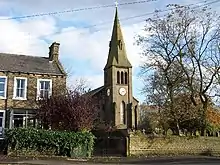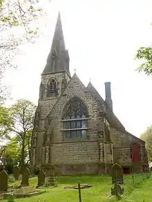 The church and graveyard were consecrated at 11 am on 3 October 1870 by Robert Bickersteth, Bishop of Ripon, although part of the graveyard had already been consecrated by 1862, and the spire was not completed.[3][16] The pews were filled to overflowing when the bishop processed into the church, followed by over thirty local clergymen, all repeating Psalm 24. The bishop read the sentence of consecration, followed by morning prayers. The choir sang, and the almost-completed organ was played for the first time by Samuel Pontefract (1815–1896) of South Crosland.[17] The bishop's sermon was based on Psalm 122, verse 1. He alluded to the recent building work, the need for support from the laity in spirit and funding, and the pressing need for the final £400 required to pay off building costs. The collection amounted to £313 7s 1d. The bishop then processed outside with the clergy, to consecrate the burial ground.[3]