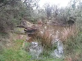 An old quarry is located in the north west corner of the park, remains of the associated tramway and crusher foundations are still visible. The tramway was known as the Scoresby Tramway. The tramway was used to transport crushed rock from the quarry, it was constructed by the Dandenong Shire Council in 1912. The wagons travelled by gravity for most of the distance, when the topography leveled out, horses were used to draw the waggons. The quarry operated for approximately three years, the tramway was removed after the cessation of quarrying.[3]