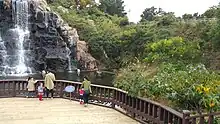 Outside is the picking orchard, artificial waterfalls, walking trail, playground and small workout facility.[1][5]
