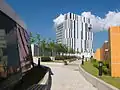 Lau Ming Wai Academic Building was called Academic 3.[21] The academic building project is divided into two phases. The first phase is a 20-storey high-rise building, and the second phase is a five-storey low-rise building with a total usable area of 20,500 m2 (221,000 sq ft). It is the tallest building in CityU. Facilities include a 600-seat auditorium, classrooms, information technology laboratories, millimetre wave state key laboratories, restaurants, learning shared spaces, and administrative offices.[22] The building was designed by the Hong Kong architectural firm Ronald Lu & Partners. The third and sixth floors are connected to the Li Dak Sum Yip Yio Chin Academic Building, while the fifth to seventh floors are connected to the student dormitory and Shaw Creative Media Centre. There are also terrace gardens on the 6th, 7th and 8th floors.