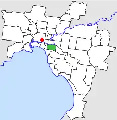 The City of Prahran was a local government area about 5 kilometres (3 mi) southeast of Melbourne, the state capital of Victoria, Australia. The city covered an area of 9.55 square kilometres (3.69 sq mi), and existed from 1855 until 1994, when it was merged with the City of Malvern to create the City of Stonnington.[2]