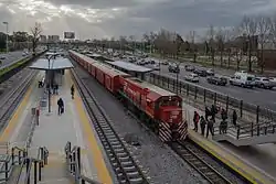Ciudad Universitaria is a railway station located in Belgrano, Buenos Aires. The station is part of Belgrano Norte Line and currently operated by both companies, private Ferrovías (for regular services) and state-owned Trenes Argentinos (for differential services only, served by Emepa Alerce DMUs).