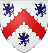 Crest: A griffin sergeant Azure, armed and membered Sable, crowned Or