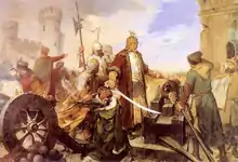 {{cite book}}: CS1 maint: location missing publisher (link) - ↑ Kodeksie Dyplomatycznym Małopolski. Kraków: F. Piekosiński, Wydawnictwa Komisyji Historycznej Akademii Umiejętności w Krakowie N. 9, t. 1. 1876. p. 43.
