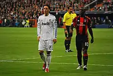 A world class midfielder, in addition to his fitness and athletic characteristics, as well as his ability to break down opposing plays and win back possession,[48][49] he was an elegant, creative player and an excellent dribbler, possessing outstanding technique, ball skills and vision, which enabled him to retain possession when under pressure and subsequently lay the ball off to an on-rushing teammate;[53] he was also an accurate passer and crosser of the ball.[48][50][54][55] Seedorf was also capable of scoring goals due to his powerful, accurate striking ability from distance with either foot;[48][49][56][57] furthermore, he was an effective free kick taker.[58] Despite his physical, energetic, and tenacious style of play, Seedorf was regarded as played with good behavior, and was sent off only two times in his entire career. In addition to his success and footballing skills, Seedorf has also been praised for his longevity as a footballer.[48]