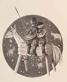 Clavileño the Swift is a fictional wooden horse, notable in both European and Near Eastern folklore, also appearing in chapters 40 and 41 of the second part of the adventures of Don Quixote. It is governed by a pin in its forehead.[1]