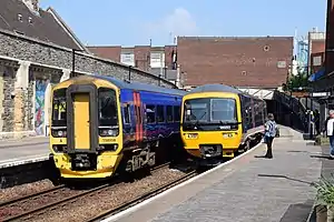 When the railway was privatised in 1997, local services were franchised to Wales & West,[10] which was succeeded by Wessex Trains, an arm of National Express, in 2001.[11] Following action by Friends of Severn Beach Railway (FOSBR) and a string of protests, services had increased to 10 per day in each direction by 2005,[1] with Bristol City Council providing a subsidy to Wessex Trains.[12] The Wessex franchise was amalgamated with the Great Western franchise into the Greater Western franchise from 2006, and responsibility passed to First Great Western, a subsidiary company of FirstGroup, rebranded in 2015 as Great Western Railway.[13][14][15][16] A minimum service requirement was written into the franchise agreement, ensuring an hourly service along the line.[9] In 2007, the Council unanimously agreed to pay £450,000 per annum to fund extra services from May 2008 for three years, which resulted in a 60% increase in passenger numbers along the line, and a 110% increase at Clifton Down.[9][17][18] Sunday services to Severn Beach were restored in 2010.[19]