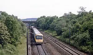 ![]() Advanced Passenger Train southbound approaching the site of the station in 1986 | |