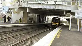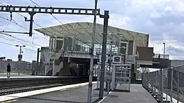There are two active platforms. A line splits off south of the station to provision a third platform, merging back just to the north; this platform is not in use. The ticket office is open from 6 AM to 9 PM, Monday to Friday. It is closed on Saturday and Sunday.[2] There is an underground park-and-ride car park with 400 spaces, open from 6 AM to 9 PM, free of charge for the time being[2] and bicycle parking. The northern terminus of the number 15 Dublin Bus route is also adjacent to the station which runs to Ballycullen in the south of the city via the city centre.