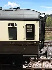 • Width of 9 feet 6 inches (2.90 m), when standard loading gauge was a maximum of 9 feet (2.7 m). To keep within GWR loading gauge restrictions, the end doors were inset to the vestibules