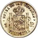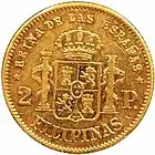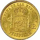 1 peso 15 mm 1.69 g 87.5% gold Reeded Queen Isabela II